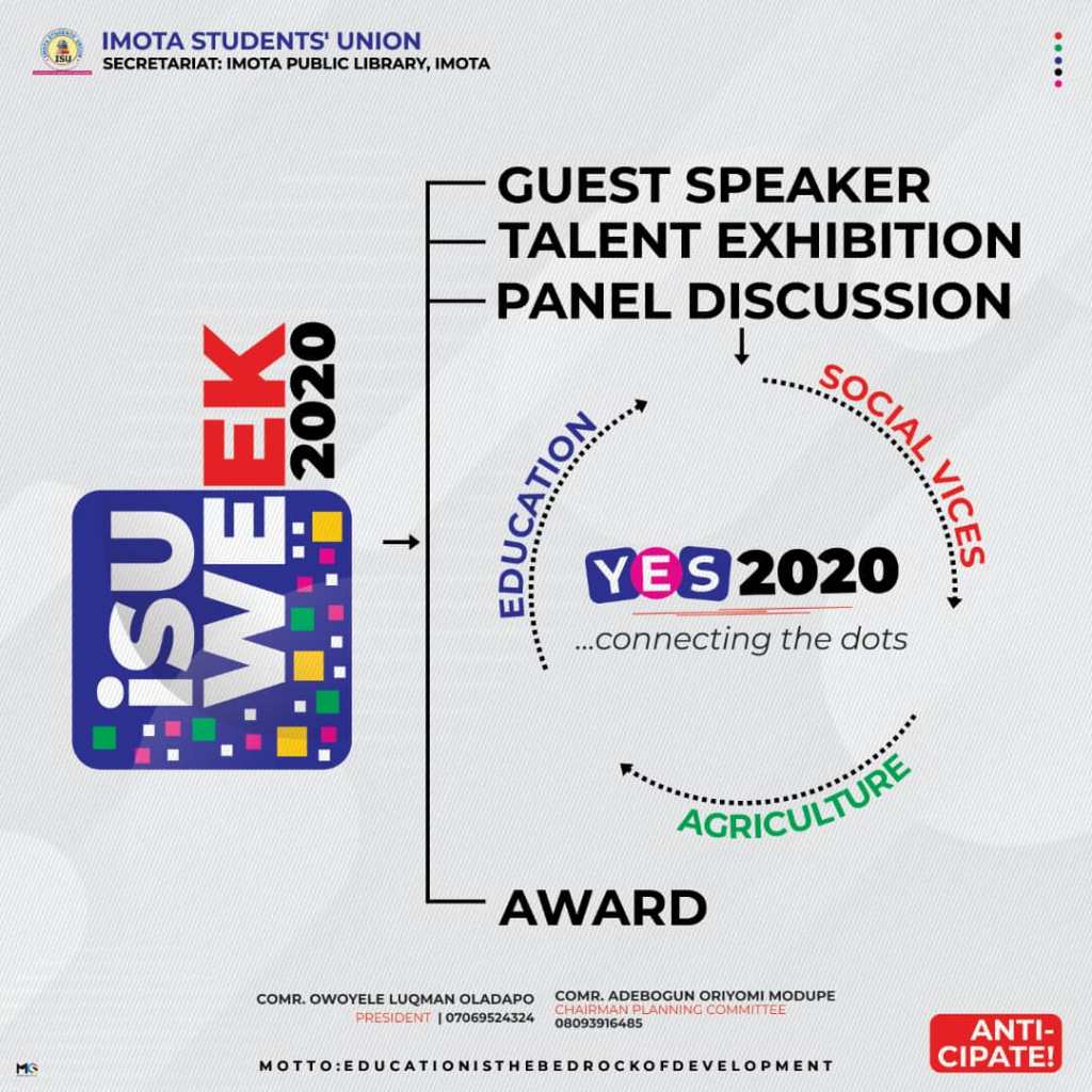 Speaking on publicity for ISU Week 2020, the secretary said that ‘’plan is on the high side to engage both the local and mainstream media for the publicity of ISU Week 2020 and also to make visible to the wider world the activities of the union, and the community at large. So, we are inviting: Lagos Television, Channels Television, Television Continental, Urun Eni, Impact News, Ikorodu News Network and many others we can lay our hands on for the coverage.