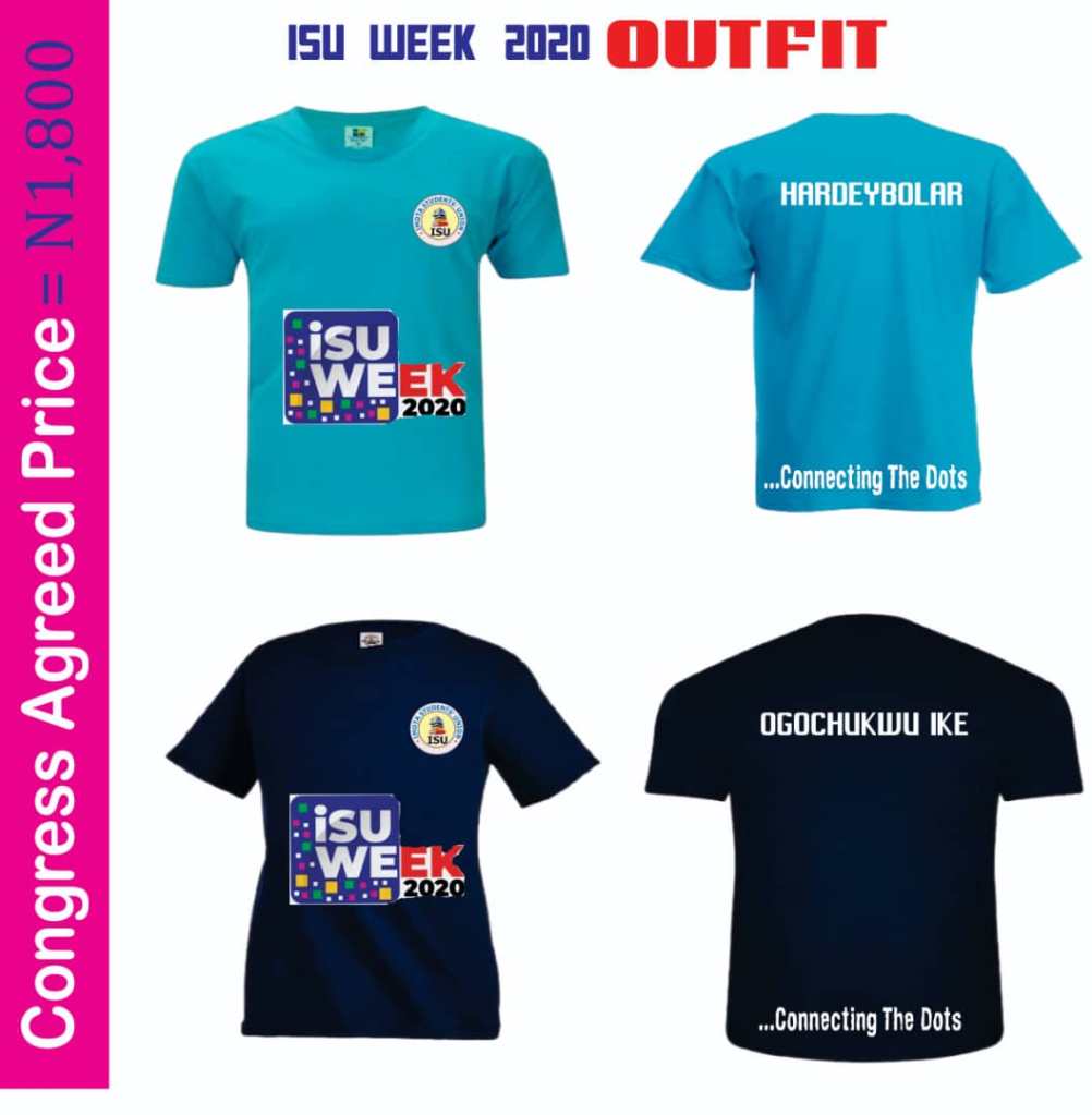 Quizzing the Secretary of ISU Week 2020 Organizing Committee, Comrade Akinsanya Yetunde Omolola on the provision for an outfit for this year’s union week, she said, “the committee has come together to pick a lovely and quality outfit for ISU week 2020 and it has been approved by the congress. The outfit is sold for N1800 for a copy, and to have a copy, you can contact the Chairman – +2348093916485 or the Secretary – +2349031601133. We advise everyone to pay on time as payment ends on 10th of November, 2020.