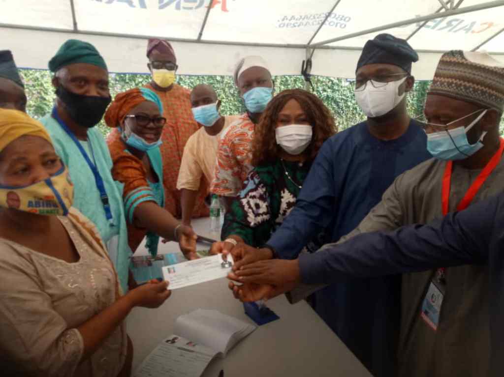 After the revalidation exercise, Senator Abiru flanked by his wife, Feyisola displayed the registration slips to the admiration of party leaders who witnessed the exercise.