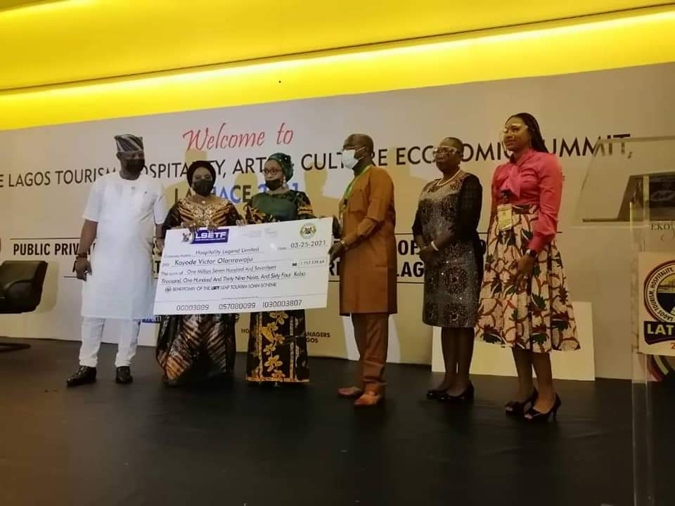 The Secretary to the State Government, SSG, Mrs. Folashade Jaji, made the presentation to the beneficiaries on behalf of the State Governor at the maiden edition of Lagos Tourism, Hospitality, Arts and Culture Economic Summit, LATHACE held at Eko Hotels and Suites, Victoria Island, Lagos on Thursday.