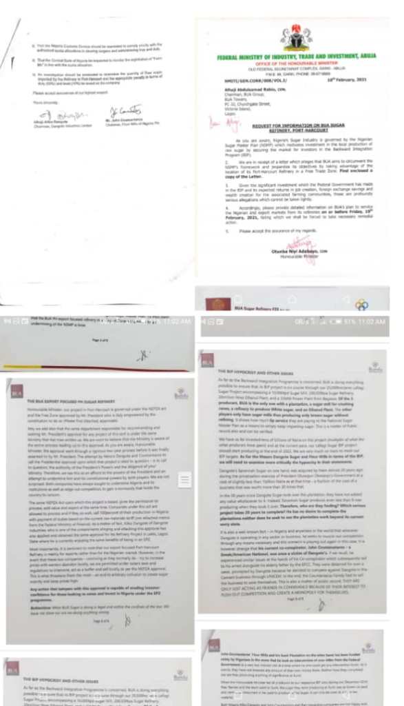 In the letter dated 28th January, 2021 signed by Aliko Dangote himself as the Chairman Dangote Industries Limited, the billionaire claimed that when the BUA Sugar refinery was opened , he warned the Government and they told him that’ no new refinery would be allowed to operate in Nigeria’. Dangote accused BUA of operating with impunity by contavening the laws as laid down in the National sugar policy by selling it’s products locally instead of producing for export alone.
