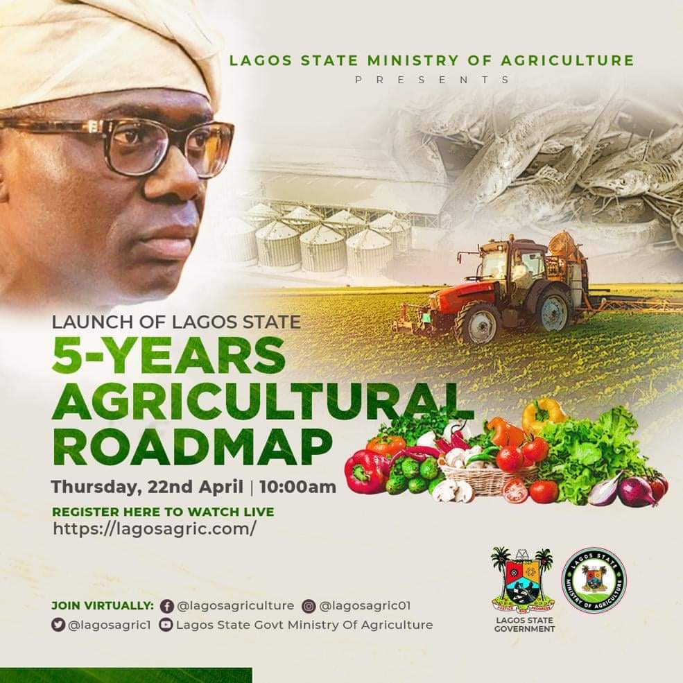The Lagos State Government is set to launch a Five-Year Agricultural Development Roadmap on Thursday, 22nd April, 2021, in line with its T.H.E.M.E.S developmental agenda.
