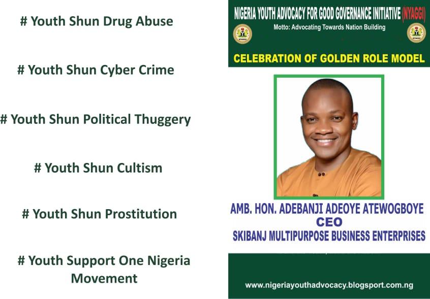 Today history will take it’s course on Amb. Hon. Adebanji Adeoye Atewogboye to receive an Award from NYAGGI, after an extensive survey of his track records, most especially the roles he played in Mary Daniel’s life (amputee hawking girl) the delegate of Nigeria Youth Advocacy for good Governance initiative (NYAGGI) decide to Award Amb. Hon. Adebanji Adeoye Atewogboye.