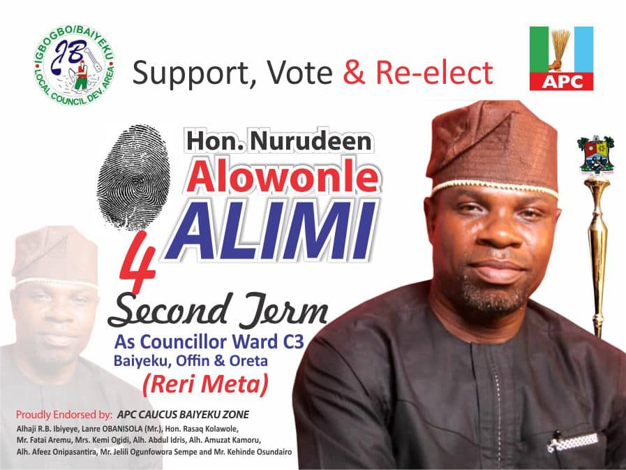 The Igbogbo Baiyeku LCDA, Ward C3, Baiyeku Zone APC leadership declared support for the re-election of Hon. Nurudeen Alonwole ALIMI for 2nd term as councillor in the ward.