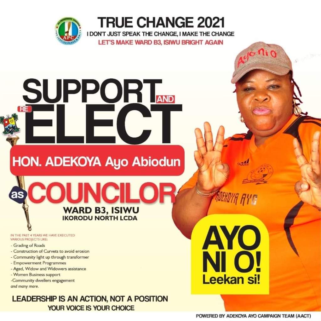 Hon. Ayo Adekoya Abiodun who is representing the good people of Isiwu Ward B3 at the legislative arm of Ikorodu North LCDA she is also the Leader of the Legislative Arm, seeks for Re-Election to represents the good people of Isiwu one more time, her letter to her constituents goes thus which also entails her achievements in the last 4 years.