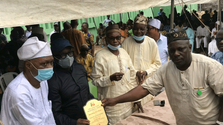 The award was presented to Hon. Benson during the monthly distribution of food items to 500 households through the iCARE Foodbank programme, held at his constituency office along Igbogbo Road, Ikorodu.