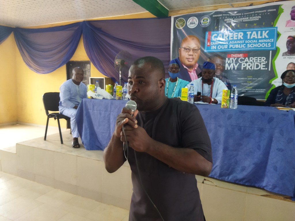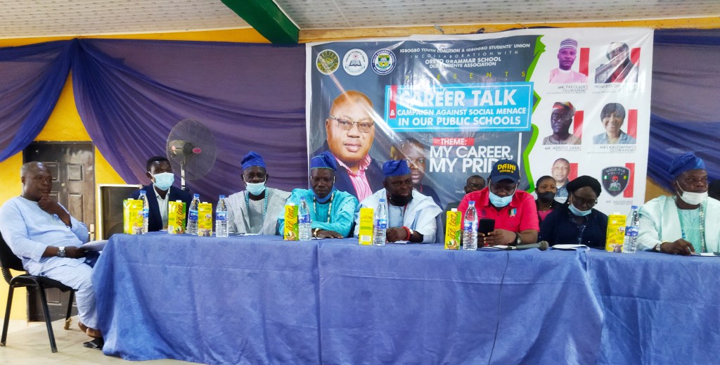 Igbogbo Youth Coalition & Igbogbo Students Union in Conjunction with Oreyo Grammar School Old Students Association organise “CAREER TALK & CAMPAIGN AGAINST SOCIAL MENACE IN OUR PUBLIC SCHOOLS” THEME: MY CAREER, MY PRIDE.