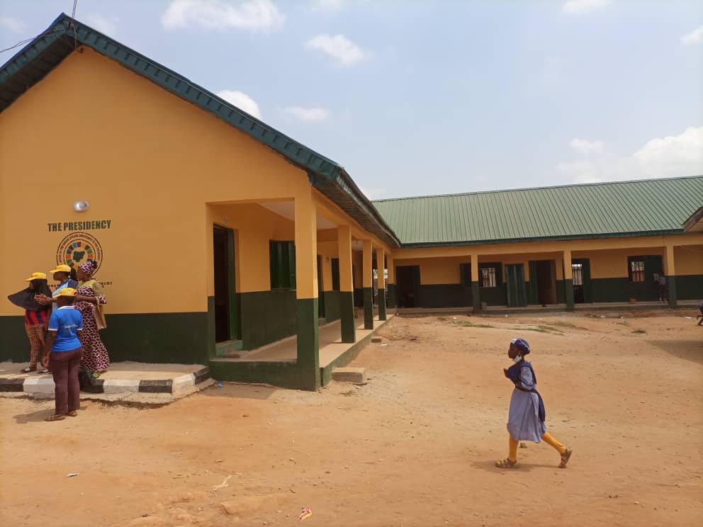 The day started with the commissioning of new block of storey-building with 12 classrooms and furniture (classroom chairs & tables) for each classroom at OMOLAIYE COMMUNITY NURSERY & PRIMARY SCHOOL, AGBEDE.