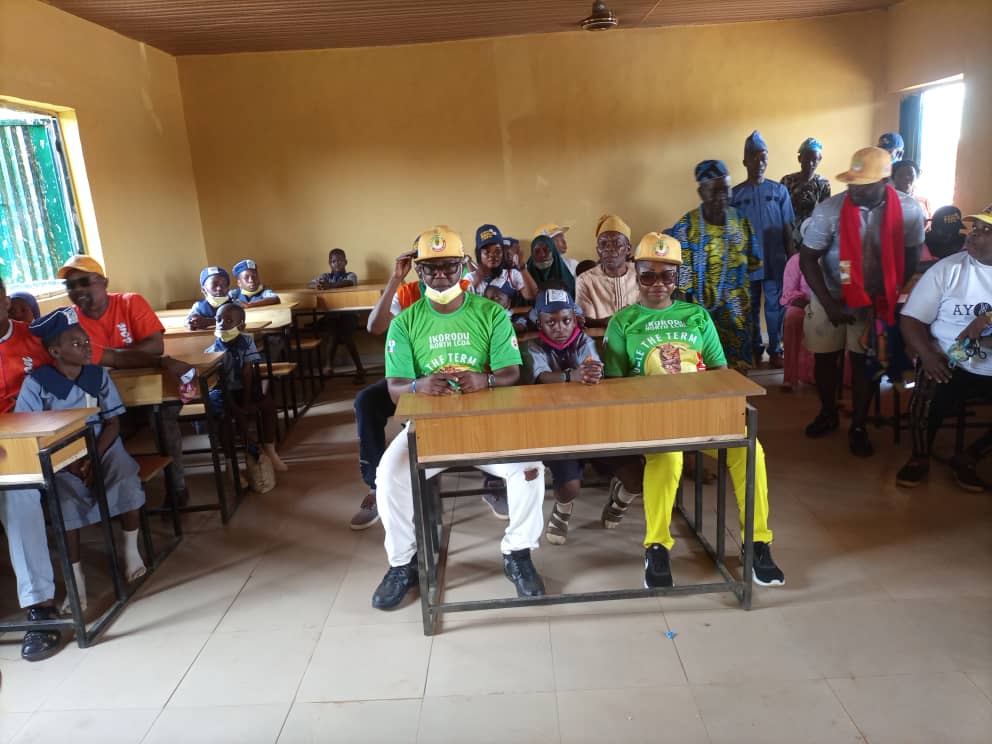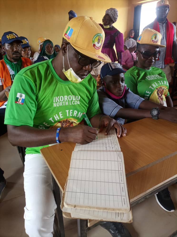 Upon commissioning the three school projects, the Chairman in the company of his enigmatic Vice – Hon. Ola Ameen Apanisile, Ikorodu North LCDA Council Leader – Hon. Ayo Adekoya, Ikorodu North LCDA Majority Leader – Hon. Aderoju Balqeez, the SLG Ikorodu North LCDA/DG Banjọ Adébisi Adéọlá Team (BAAT) – Mr. Niyi Odugbesi, the CoS Ikorodu North LCDA & Gen Secretary, BAAT – Mr. Abiodun Banjo, the Director of Publicity, BAAT – Mr. Tunde Adekoya, the delectable wife of the Chairman- , Mrs. Folashade Banjo, Supervisory Councillor for Women Affairs, Ikorodu North LCDA & Director of organization, BAAT – Hon. Princess Abimbola Adaramola-Jegede, the SA to the Chairman on Education- Lydia Oremosu Agoro and notable party members like Alhaji Azeez Aregbesola (Chairman APC Ward E2), scores of supporters embarked on extensive sensitization tour of the five wards under Ikorodu North LCDA.