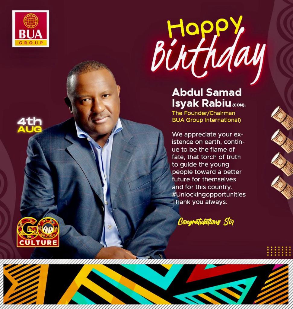 Youth and culture promoter, Idris Coker Iwalewa has congratulated Alhaji Abdulsamad Rabiu, the billionaire businessman, industrialist, philanthropist and Founder/Chairman, BUA Group of Companies, on his 61st birthday on August 4.