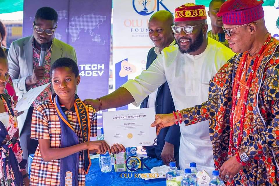 It was a proud moment and an atmosphere of happiness in Iworo Kingdom, Badagry ,Lagos last Thursday 19th August 2021 as Olu-Kosoko Foundation in partnership with Tech4Dev certifies their first cohort participants of students in basic digital literacy
