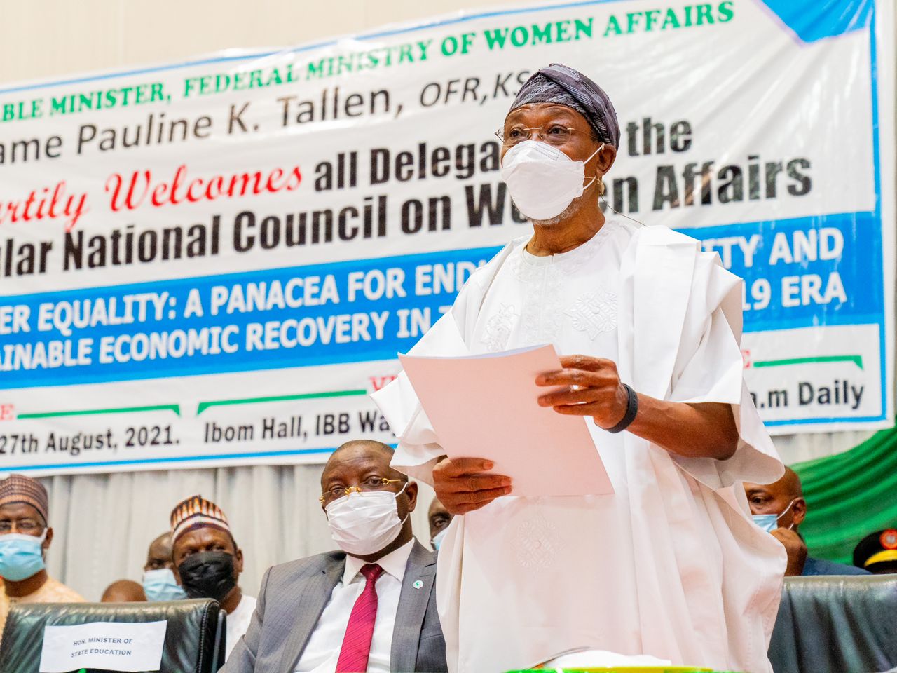 Other dignitaries in attendance at the occasion were the Minister of Sports and Youth Development, Sunday Dare; the Minister for State, Finance, Budget and National Planning, Prince Clem Agba; the Minister for State for Education, Chukwuemeka Nwajiuba; Permanent Secretary, Ministry of Women Affairs, Engr. Funso Adebiyi; representative of the First Lady and wife of the Governor of Akwa Ibom State, Mrs Martha Udom Emmanuel; representative of the Speaker, Akwa Ibom State House of Assembly, development partners, civil society organisations, governments and non-government organisations.