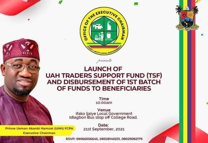 Prince Usman Akanbi Hamzat will officially launch the UAH Traders’ Support Fund on Tuesday, September 21, 2021 at the Council Secretariat in Idiagbon, while disbursing N25 Million to 500 Traders who will get N50,000 each.