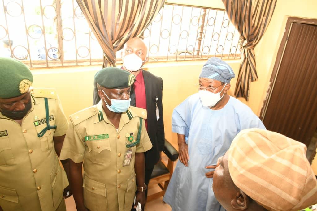 Before leaving Oyo, the Minister’s entourage paid a courtesy visit to the Alaafin of Oyo, Oba Lamidi Adeyemi III, and commiserated with him over the attack of the FG facility in his town.
