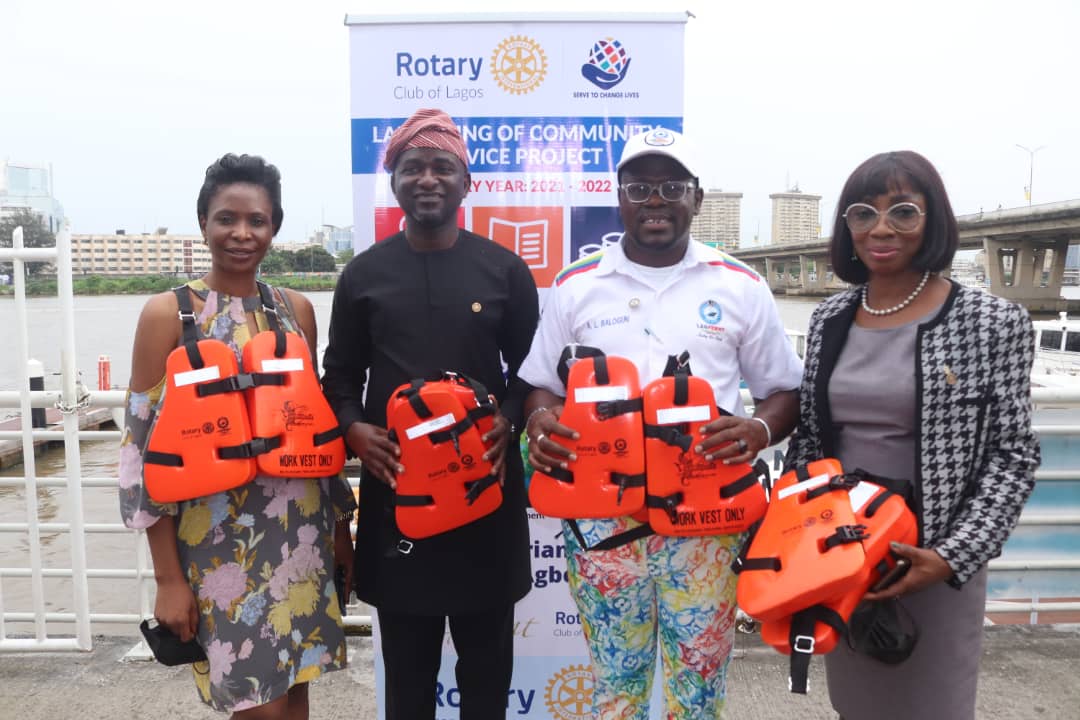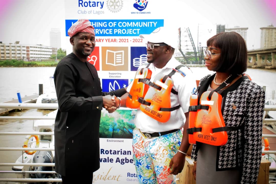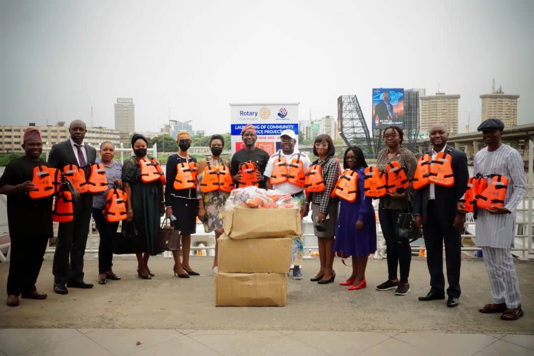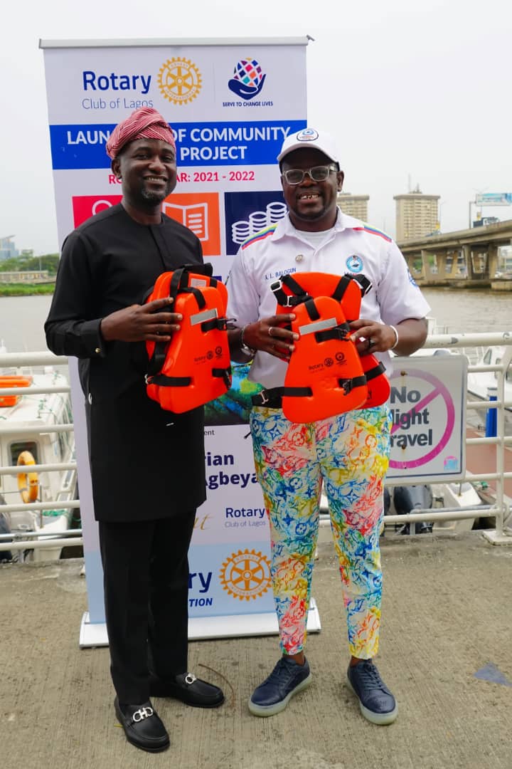 As part of efforts to ensure passengers safety on Lagos waterways, the Elegushi of Ikate kingdom, Oba Saheed Elegushi and members of the Rotary Club of Lagos at separate events made donations of life jackets to the Lagos Ferry Services (LAGFERRY).