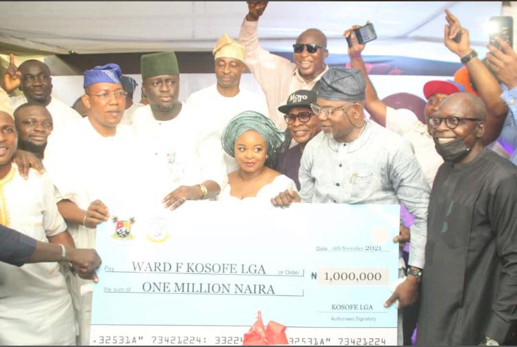 The ward with the highest votes during LG election which is ward F, Ojota were awarded with the sum of One million naira only.”