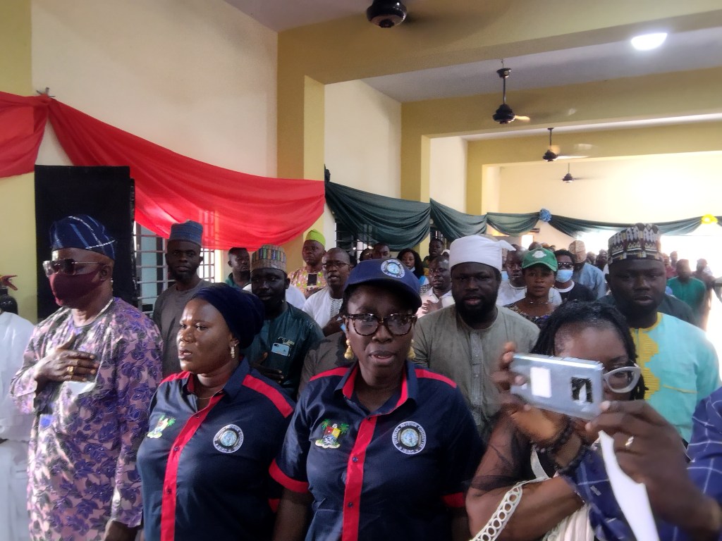 Dignitaries in attendance; Alh. Sefiu Ogunyemi, APC LGA Chairman, Igbogbo Baiyeku LCDA; Prince Jimoh Ogunmuyiwa, Fmr. Chairman IBLCDA; Hon Gbenga Basanya; Fmr. Chairman IBLCDA, Hon Taiwo Orenuga; Fmr. Executive Secretary, Igbogbo Bayeku LCDA; Yeye Bolanle Basorun, Fmr. Sole Administrator, Igbogbo Baiyeku LCDA; Pastor Ola Ayetoba, Fmr. LGA Chairman, Igbogbo Baiyeku LCDA; Alhaji Amusa Afolabi LGA Secretary Ikorodu Division; Hon Rotimi Olowonisaye, Fmr Vice Chairman, Igbogbo Bayeku LCDA; Mrs. Mojisola Ogabi, Council Manager, Mr. Nuraini Oke-Maja, the Vice Chairman, Igbogbo Bayeku LCDA; the Vice Chairman, Yaba LCDA Hon. Aileru; the Council Leader, Hon Nurudeen Alimi; Hon. BABs Basirat Adetutu Banjoko; Hon. Akeem Solawon; Hon. MKO Mathew Arowolo; Hon. Anifowose, Headteachers from the 12 primary, schools in Igbogbo Bayeku LCDA; All Management staff, Nulge leadership and huge numbers of staff Representatives from Transport Union; Representatives from Market Associations; Reps from Religious Societies; Representatives from Artisans; Representatives Non-indigenes