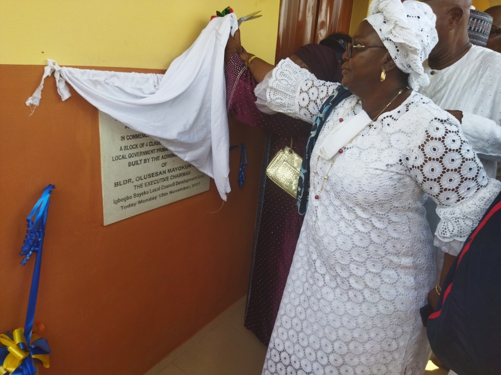 The chairman on the latter, chaperoned by council executives, education district 2 delegates and Senator Seye ogunlewe proceeded to LG primary school Degolu in igbe-laara axis (igbogbo baiyeku LCDA) for the commissioning of newly constructed block of 4 classrooms and an office which was unveiled by Olorunfunmi Basorun represented by Yeye Bolanle Basorun.
