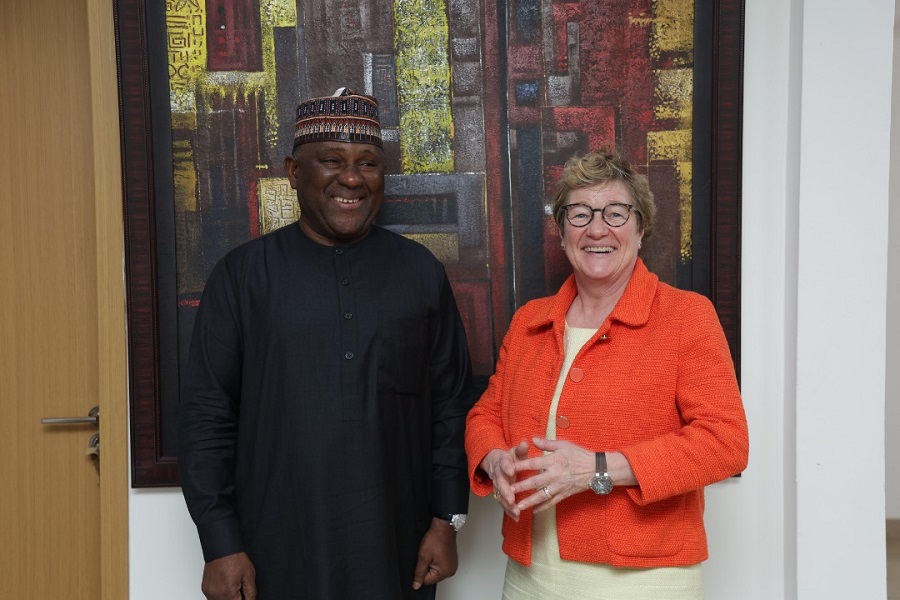 Abdul Samad Rabiu, Founder/Executive Chairman, BUA Group and the Deputy Minister for International Trade for Finland, Ms. Nina Vaskunlahti when the Deputy Minister paid a courtesy call on the Chairman at the BUA Regional Office in Abuja.