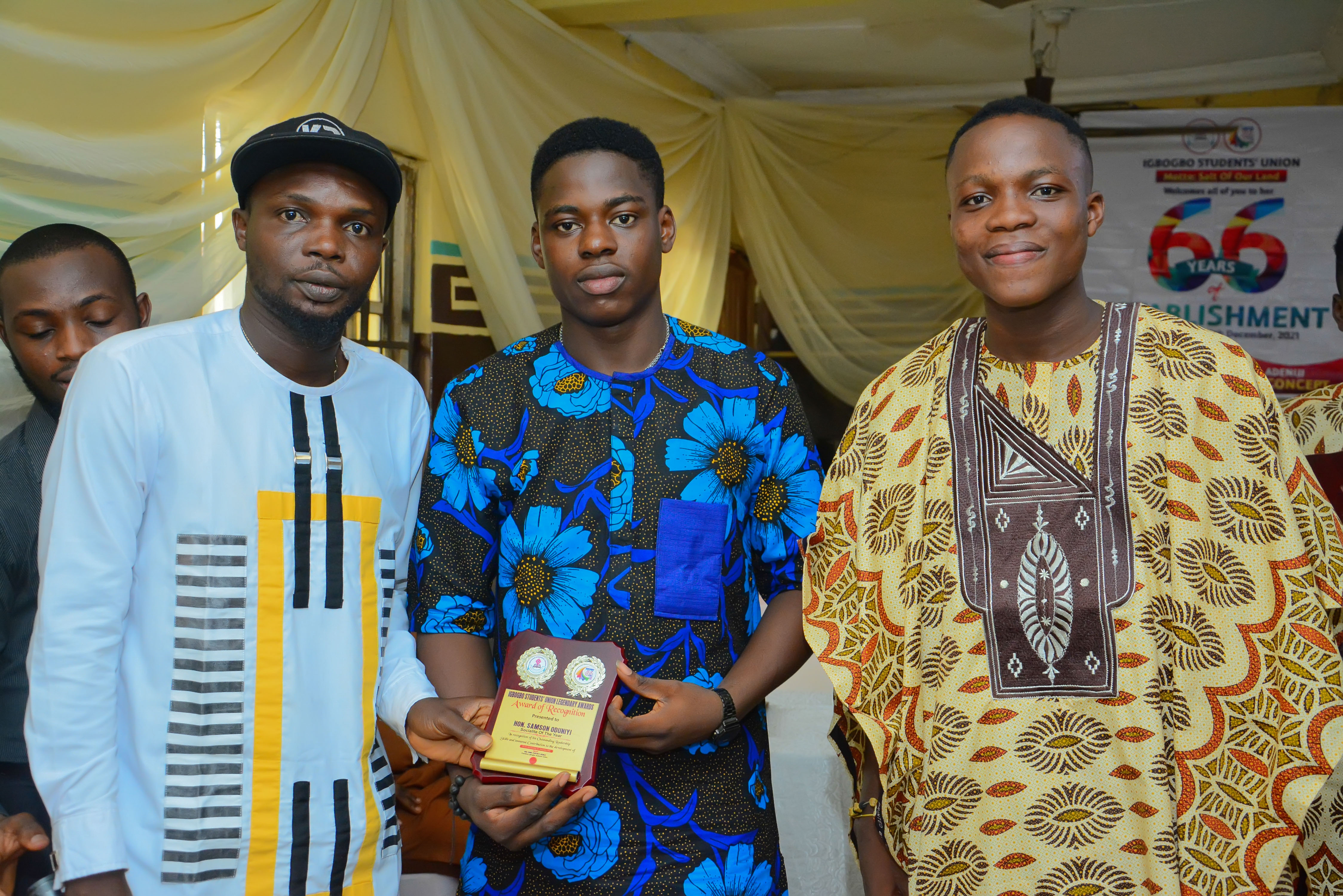Miss Toluwani Dopemu (Overall Best Student), Mr Andu Arif Opemipo (ISU Ambassador), Comr Ogunlana Romoke (Winner, Public Speaking Contest), Comr Aliu Saliu (Executive of the Year), Hon Tijani Adebayo Abdulsalam (Parliamentarian of the Year)