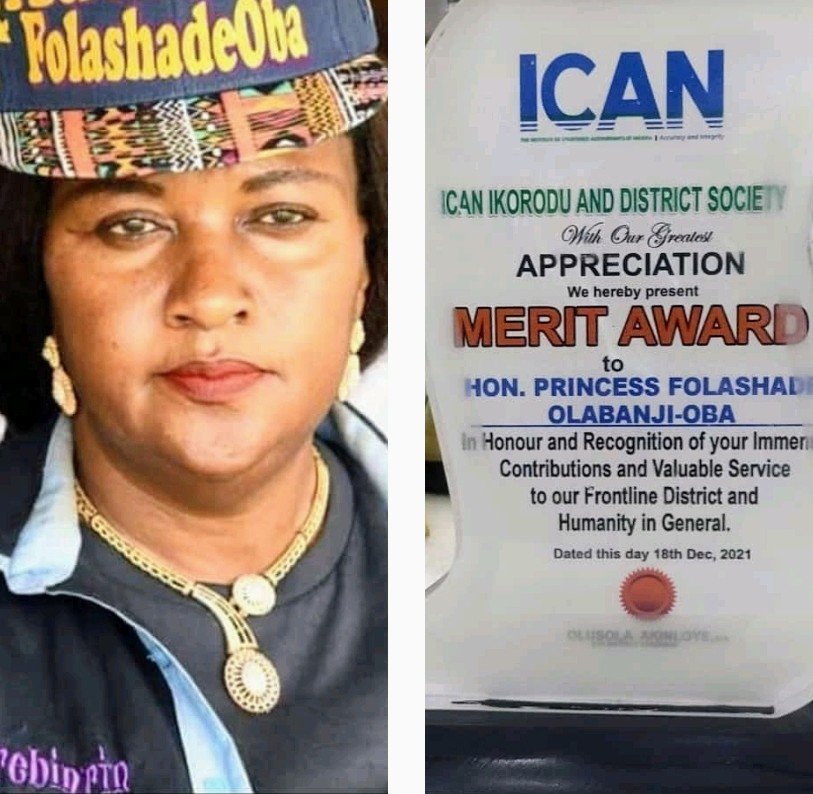Frontline district of the institute of chartered accountants (Ikorodu Branch) conferred Ikorodu local government’s vice chairman (Aarebirin (Hon) Princess Folashade Olabanji-Oba) a Service based Excellence Award on the 18th of December 2021