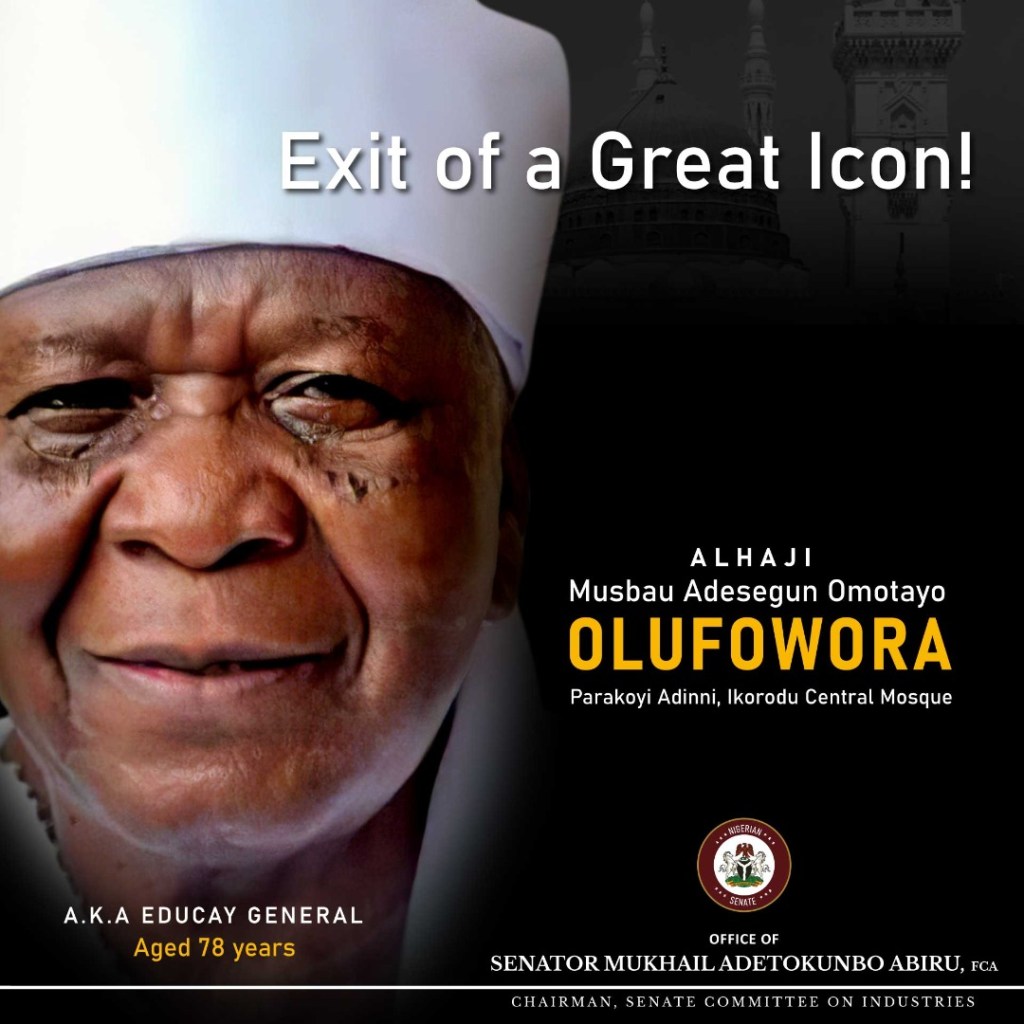 The passing of Alhaji Musbaudeen Omotayo Olufowora is a great loss to me personally and to the entire Ikorodu people. Alhaji was very supportive during my electioneering campaign.