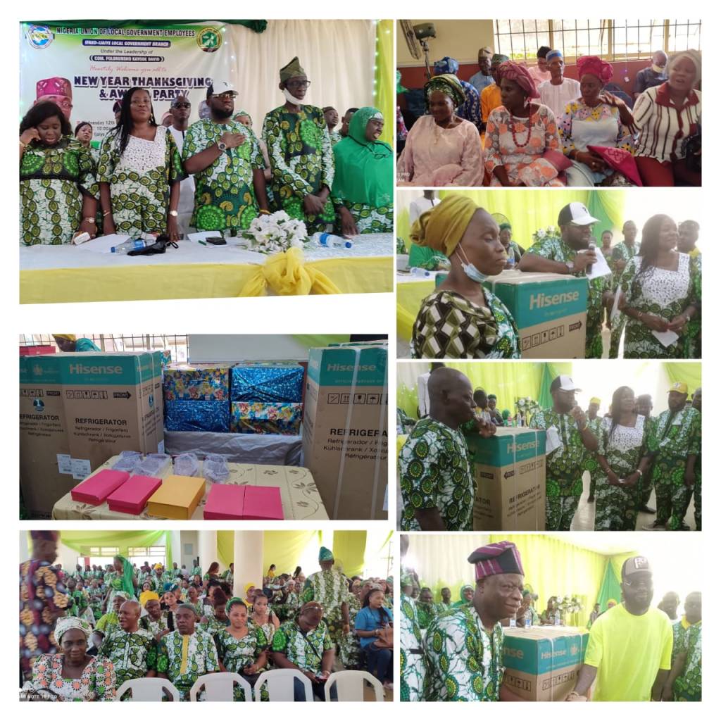 Yesterday, the Staffs of Ifako-Ijaiye Local Government converged at the Council’s Secretariat in Idiagbon for an unprecedented Prayer Session and Thanksgiving/Awards Party.“` Religious leaders from Christian Association of Nigeria (CAN) and Ifako-Ijaiye Muslim Community led the Executive, management and Staffs of the Local Government through prayers, as they prepare for Year 2022. Pastor Alo from CAN Ifako-Ijaiye and Sheikh Nosirudeen Asisoloriro from the Muslim Community prayed for divine guidance and greater heights for the administration of Prince Usman Akanbi Hamzat in the New Year and beyond. The Award event, as organized by the National Union of Local Government Employees (NULGE), Ifako-Ijaiye Branch, also appraised activities of the Local Government in 2021 while awarding diligent workers and astute supporters of the Local Government staffs. The NULGE Chairman, Comrade Folorunsho David noted that the administration of Prince Usman Akanbi Hamzat (UAH) had brought lots of positive impacts to Ifako-Ijaiye Local Government especially on Staff Welfare; hence the Award and Thanksgiving ceremony. Amongst those who were honoured with the NULGE awards were the Executive Chairman, Prince Usman Akanbi Hamzat alongside Hon. Mrs. Oluwatoyin Awoniyi Akerele (Vice Chairman), Mr. Abdur-Raheem Ogunbambi (Council Manager), Mrs. Morenike Babs-Ogunleye (Council Treasurer), Mrs. Bisi Mariam (Human Resources Officer), Retirees alongside others. Highpoint of the event also featured the presentation of Cash Gifts and Hisense Refrigerators to five best Staffs of Year 2021 in the following categories: *Category: Best Junior Staffs of Year 2021* _*{#100,000 Cash with Hisense Refrigerator each}*_ Mr. Adekunle Kayode _”Baba Edo”_ (Security Man) Mrs. Titilola Kuto (Female Police Officer) Mrs. Dorcas _”Iya Dorcas”_ (Cleaner) *Category: Best Senior Staffs of Year 2021* *_{#250,000 Cash with Hisense Refrigerator each}_* Barr. Agunloye Samuel Ayodele (Legal Officer, Ifako-Ijaiye) Dr. Solomon Oyetoyan (Medical Officer of Health – MOH, Ifako-Ijaiye) In his speech, while honouring best Staffs of the Local Government at the Thanksgiving/Awards Party, the Executive Chairman, Prince Usman Akanbi Hamzat noted that the rewarding mechanism for diligence and hardwork was a core policy in his *UAH HEEDS Agenda for a Greater Ifako-Ijaiye* and will continue to be implemented in the coming years. He said that his administration will give #100,000 to Best Staffs of the month in Year 2022. _*”Ifako-Ijaiye Local Government had set a standard pace in 2021. We achieved a lot within the shortest period with the support of God and these dedicated staffs. If our working principle queries erring staffs, then honouring efficiency service and productive workers is very important”*_ Prince Usman said. _The event was well attended by a foremost Nigerian Footballer, Lukman Haruna (who is an indegene of Ifako-Ijaiye) the Executive, Legislative Arm, Management and Staffs of the Local Government from all Departments and Units alongside the leadership of National Union of Local Government Employees (NULGE), Ifako-Ijaiye Branch._ *Reporting…* Lateef Oladimeji Salaam *Chief Press Secretary to the Executive Chairman,* IFAKO-IJAIYE LOCAL GOVERNMENT *UAH Media Team ©️*