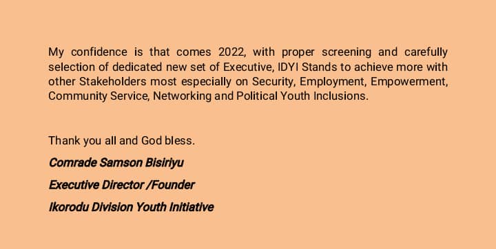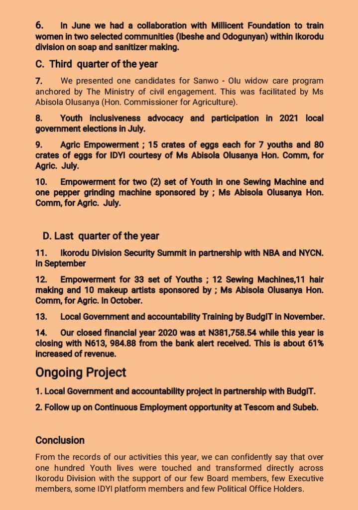 These are the activities Ikorodu Division Youth Initiative carried out in the year 2021.