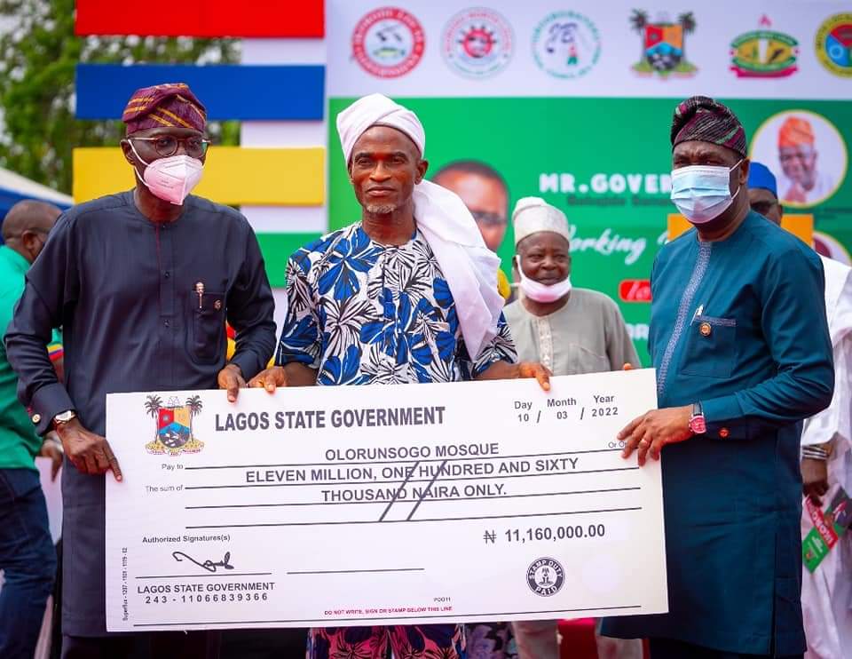 In line with promises made to those affected by construction projects going on in Ikorodu, Governor Sanwo-Olu handed N500 million compensation to 74 claimants and worship centres whose structures were demolished to pave way for the construction of Igbe-Igbogbo-Bola Ahmed Tinubu Way.