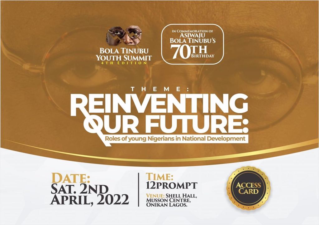 BOLA TINUBU YOUTH SUMMIT 4TH EDITION still holds this Saturday……