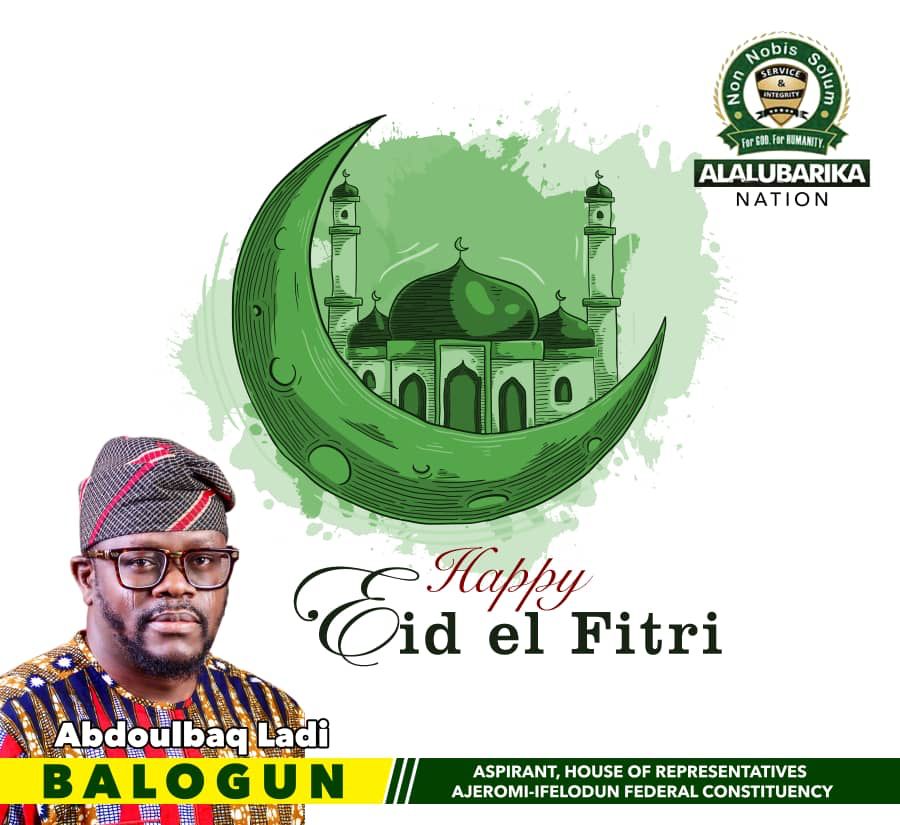 Hon. AbdoulBaq Ladi Balogun wishes the Muslim community a happy Eid-l-Fitri.