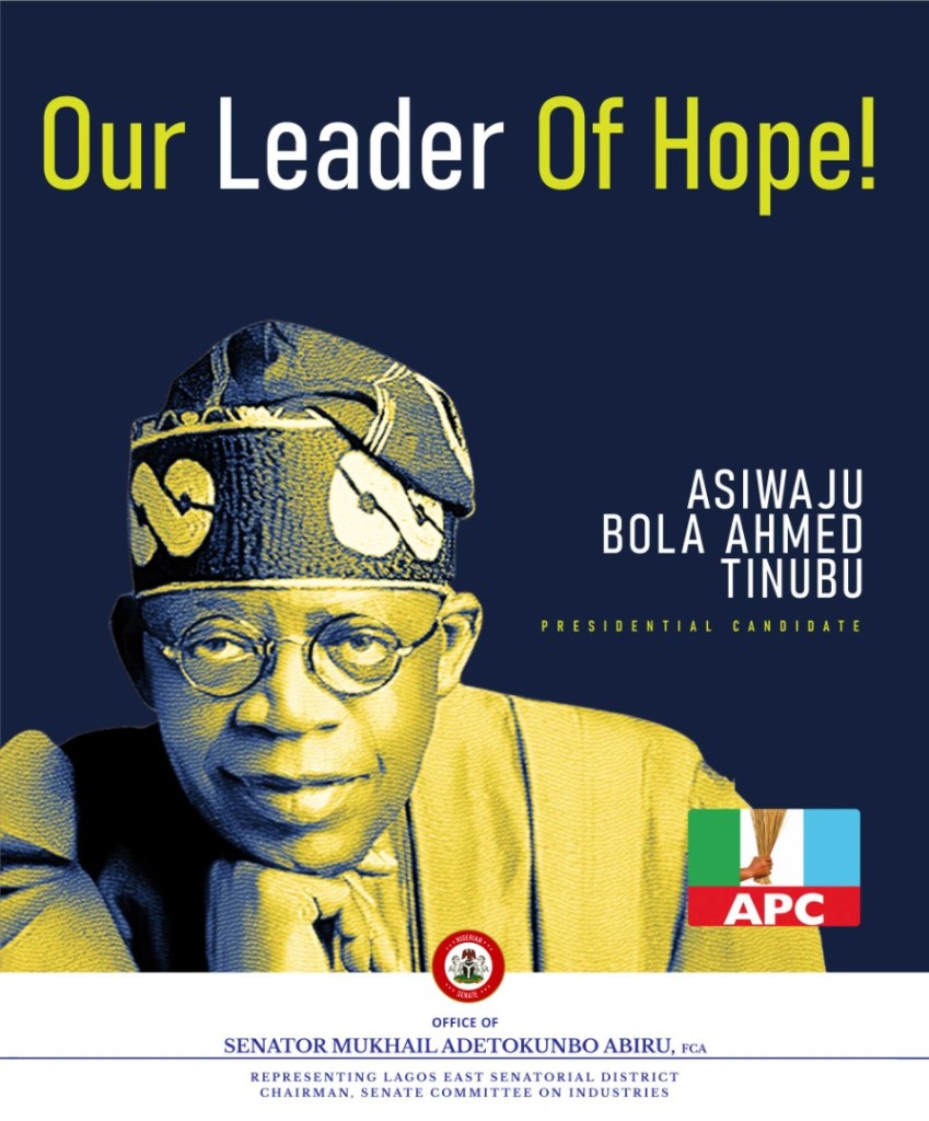 The Chairman, Senate Committee on Industries and the Senator representing the Lagos East Senatorial District, Distinguished Senator Mukhail Adetokunbo Abiru has congratulated the National Leader of the ruling All Progressives Congress (APC), Asiwaju Bola Ahmed Tinubu on his emergence as the party’s presidential flag bearer for the 2023 elections.