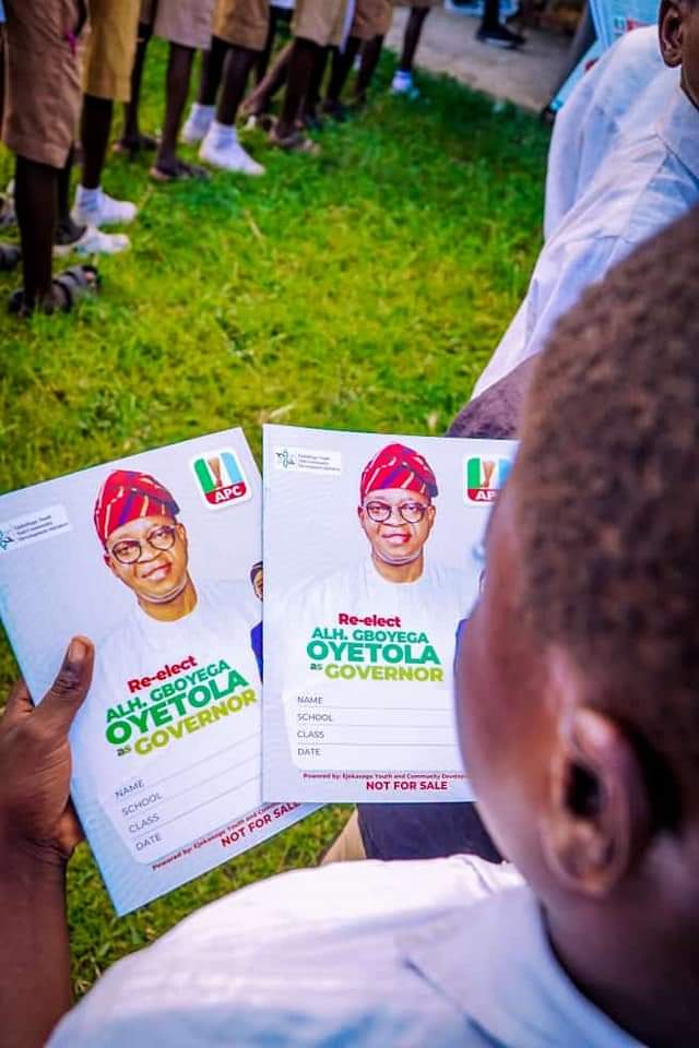 At the early hours of yesterday, Hon. Ogungbemi Idowu Samuel ( Sogo Omo Osun ) – Secretary, Ayedaade Local Government, Osun State together with APC AYEDAADE LOCAL GOVERNMENT Chairman – Alhaji. Ramoni Morenikeji , Alhaja. Aminat Amiola – Secretary, LGEA AYEDAADE and Team Members of the Initiative launched the maiden education intervention programme of his movement – Ejeka Sogo Youth and Community Development Initiative in Gbongan and Odeomu, Ayedaade Local Government which is the distribution of Exercise books.
