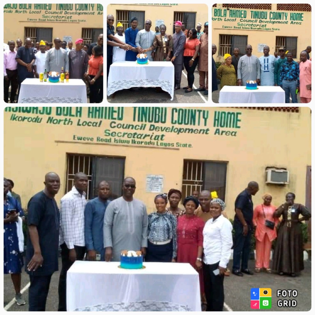 The Chairman, Builder Deola Banjo led the cake cutting exercise after which he took pictures with members of every departments in the Ikorodu North LCDA.