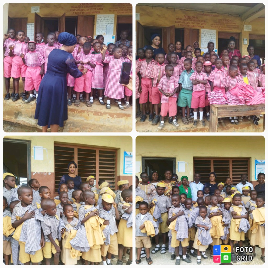 October 18, 2021 Princess Basirat Adetutu Banjoko donates school uniforms to students of Methodist primary school and Ansar udeen primary school in her ward.