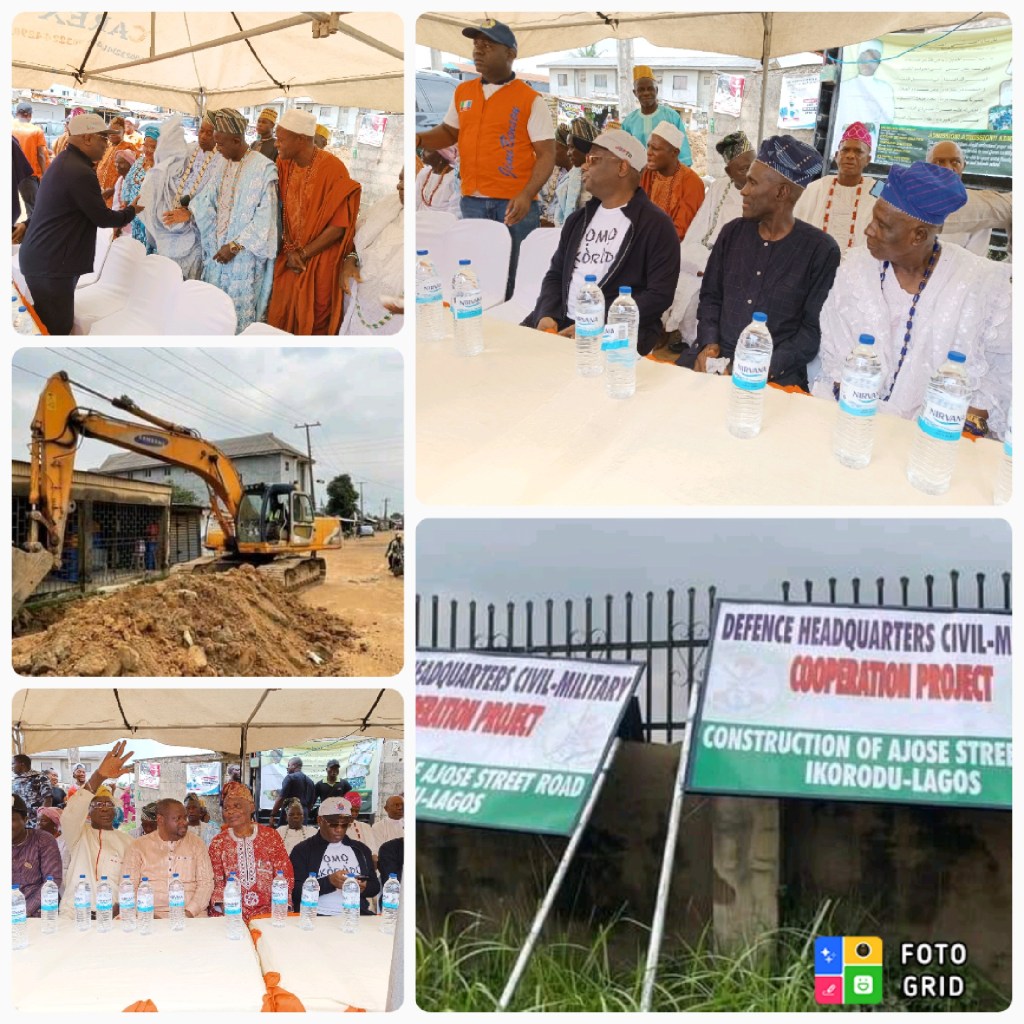 Rep. Babajimi Adegoke Benson flag-off construction of 1.5km Ajose road, Ibeshe in Igbogbo/Baiyeku LCDA, in response to the yearnings of residents in the axis, the road is being constructed by the Defence Headquarters.