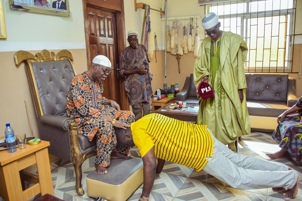 Prince Lanre Sanusi commenced with house to house interaction with the people of the community which he started with Alamuwo of Amuwo Land Oba Isaac Owolabi Olayemi, he pray and give his royal blessings to PLS.
