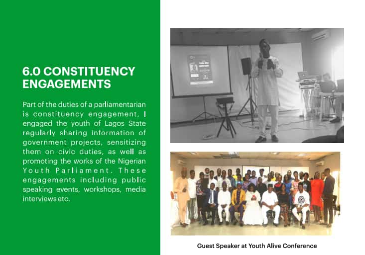 “It is with full sense of responsibility and accountability, that I make public report of my activities alongside over 200 Youth Leaders in Lagos Central in my capacity as representative of Lagos Central Senatorial District in the Nigerian Youth Parliament”
