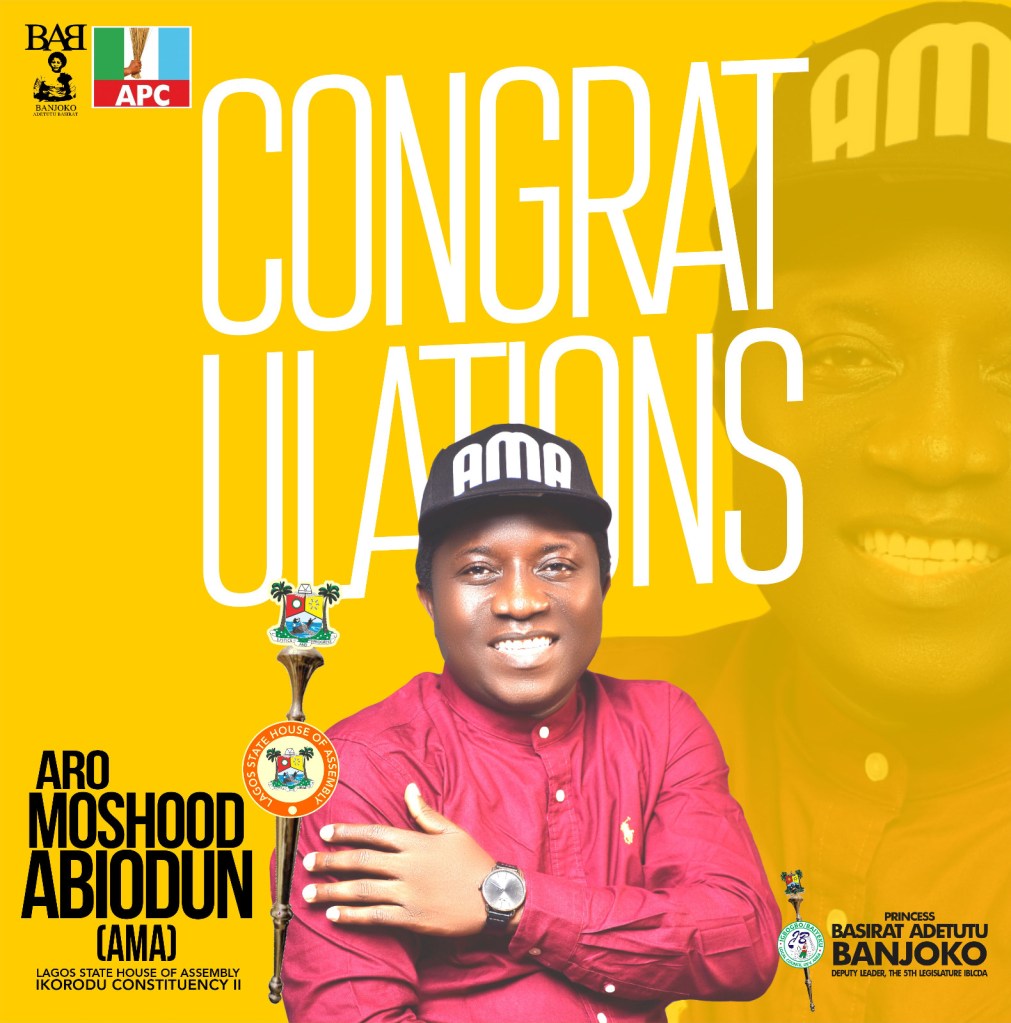Heartily congratulations to Hon. Aro Moshood Abiodun for his massive landslide victory at the poll in the recently concluded state assembly election.