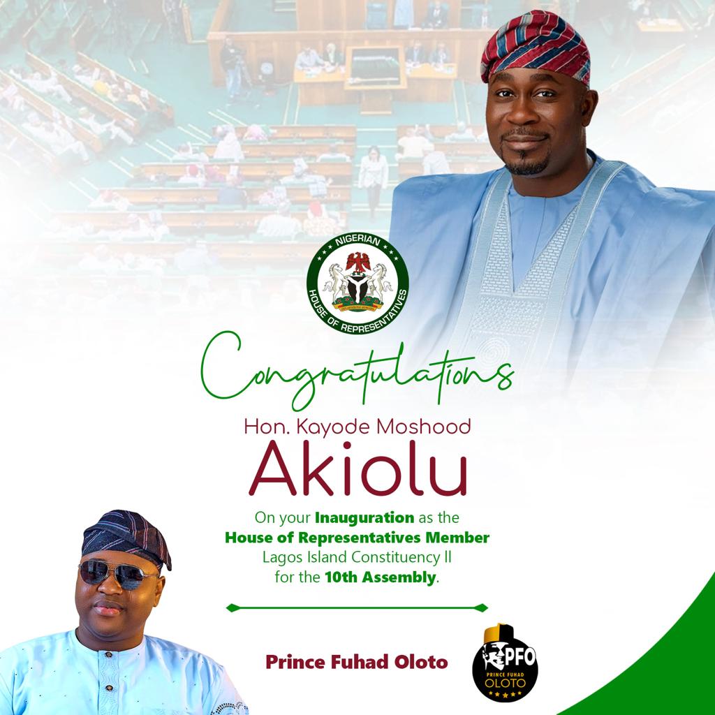 “Congratulations to Hon. Kayode Moshood Akiolu on his inauguration as a member of the Federal House of Representatives,” Prince Oloto said in the statement. “I am confident that Hon. Akiolu will bring his wealth of experience and expertise to the House and contribute to the growth and development of our great nation.”