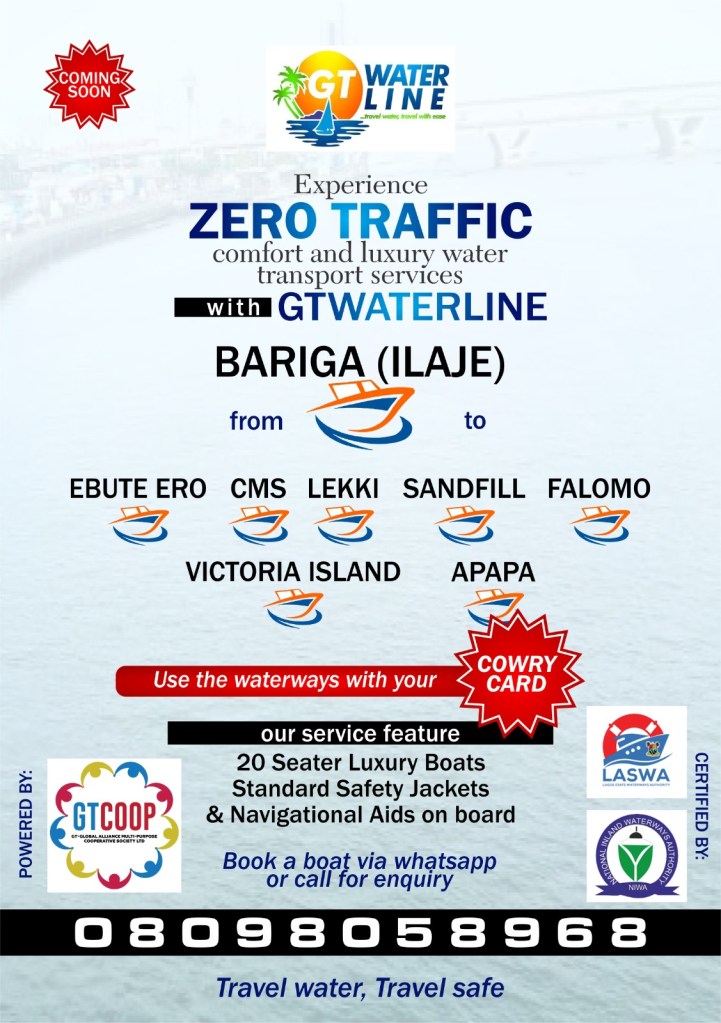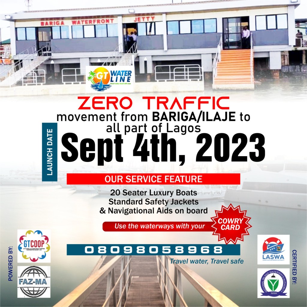 To provide a seamless water transport system that would complement other modes of transportation to the people of Shomolu, kosofe, Lagos Mainland, Lagos Island and environs, a notable commercial ferry operator, the GT Waterline is set to commence an affordable water transport services at the Ilaje Bariga Waterfront Jetty in Lagos.