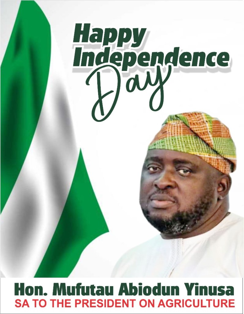 Hon. Abiodun Yinusa, SA to President on Agriculture, has extended his warm felicitations to Nigerians on this special occasion of Independence Day.