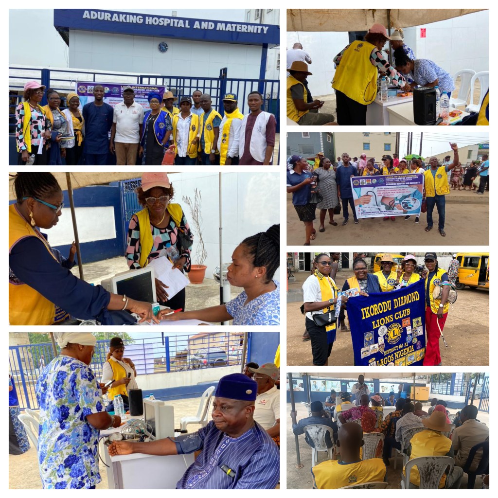 Ikorodu Diamond Lions Club, in collaboration with Aduraking Hospital and Maternity, organized an awareness campaign from Ikorodu garage to Haruna bus stop on Thursday 4th of October. The campaign aimed to raise awareness about cancer and provide screenings for diabetes, blood pressure checks, discounted laboratory tests, and health talks.