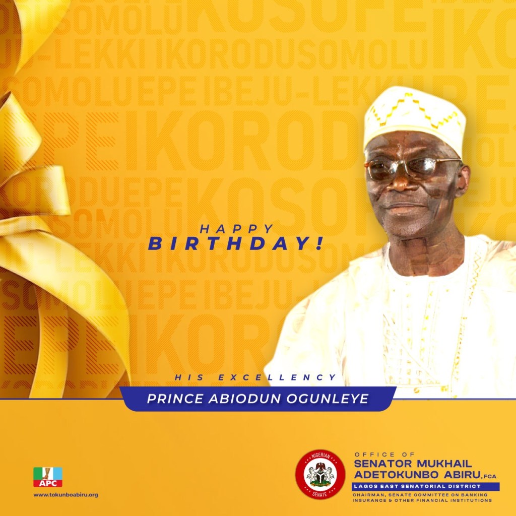 On behalf of my family and the entire good people of the Lagos East Senatorial District, I heartily congratulate our revered apex leader, the former deputy governor of Lagos State and member of the prestigious Governance Advisory Council, GAC, *His Excellency, Prince Abiodun Ogunleye*, on the occasion of his birthday.