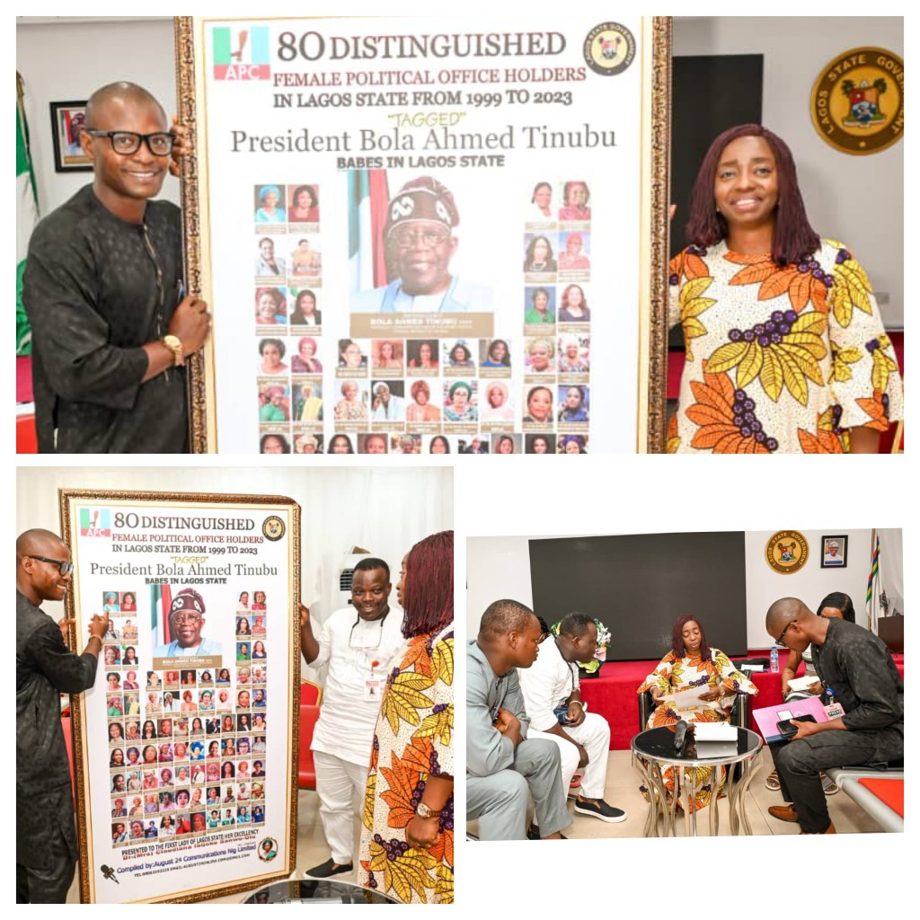 Publisher of Nigerian Popular Online News Platform; August24news.com Mr. Ajagbe Adeyemi Teslim has presented a 40 by 72 inches modern frame displaying the faces and profiles of 80 distinguished female political office holders in Lagos State from 1999 to 2023 to the First lady of the state, Her Excellency, Dr (Mrs) Ibijoke Sanwo-Olu.