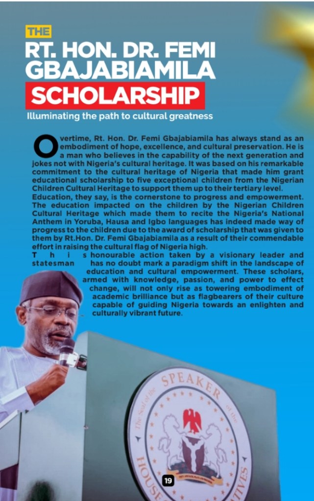 Nigerian Children Cultural Heritage (NCCH) expressed their deepest appreciation to Rt. Hon. Femi Gbajabiamila, the Chief of Staff to the President, for his outstanding commitment to education and child development.