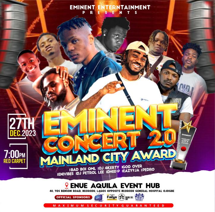 The Eminent Concert 2.0 and Mainland City Award is set to take Ikorodu by storm with an incredible lineup of talented artists. Get ready to groove to the beats of IBAD BOI OML, DJ 4KERTY, GOD OVER, DJ PETROL, DHEE-P, EAZY9JA, and PEDRO as they grace the stage with their electrifying performances.