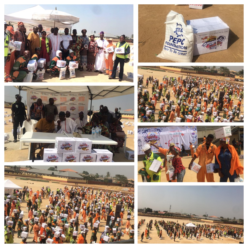 Pepc foundation gave out relief packages to 700 LAWMA sweepers in Ikorodu Division at the Igbogbo stadium on the 18th December, 2023.