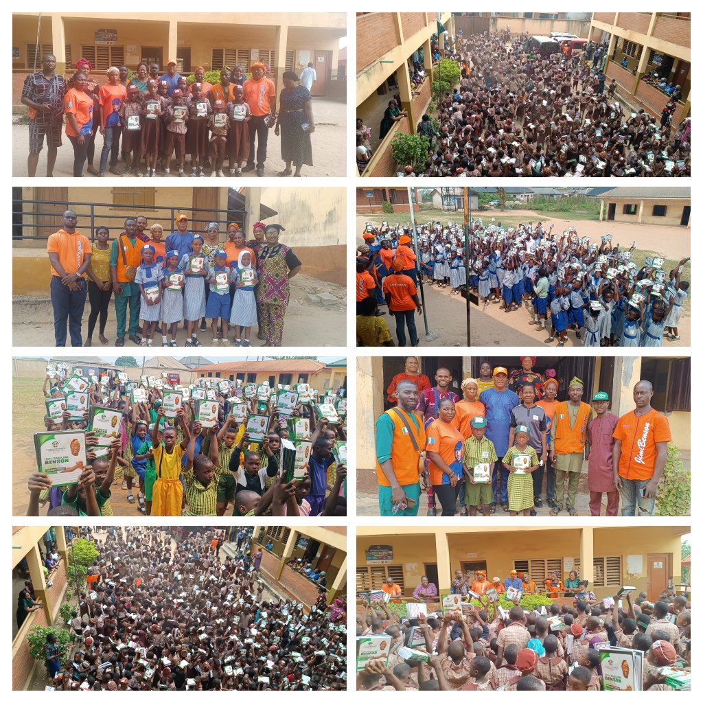 In Imota LCDA, exercise books were delivered to U.N.A Primary School in Oke-Agbo, LG Primary School in Imota, St. John Anglican Primary School in Imota, and Abejoye Primary School in Igbokuta.