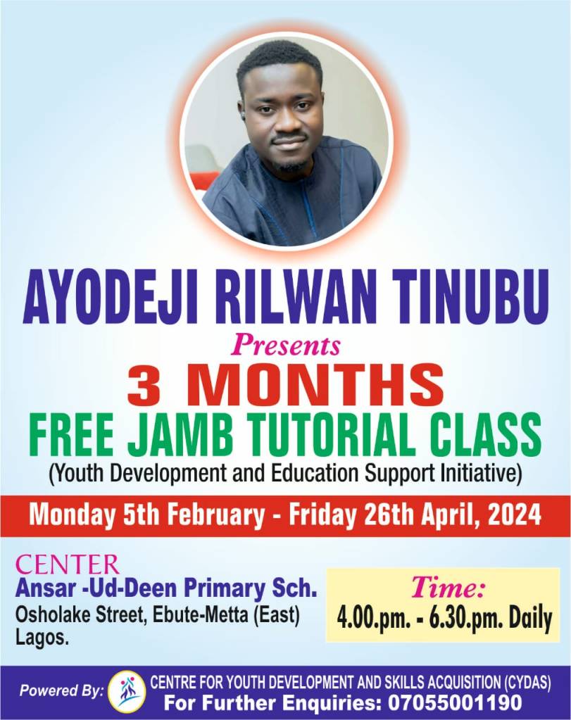 Ayodeji Rilwan Tinubu, in appreciation of the warm reception during his birthday celebration, has generously donated gifts from the Committee of Friends for ART 25 to organize a three-month free Joint Admission Matriculation Board coaching for eligible students in Lagos Mainland. This philanthropic initiative aims to support students in their exam preparation.